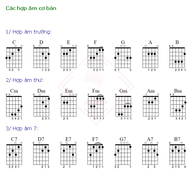 Hợp âm cơ bản là bước khởi đầu quan trọng cho bất kỳ ai muốn học chơi guitar. Những hợp âm guitar cơ bản bao gồm hợp âm trưởng (Major Chords) và hợp âm thứ (Minor Chords), được sử dụng phổ biến trong hầu hết các bài hát.